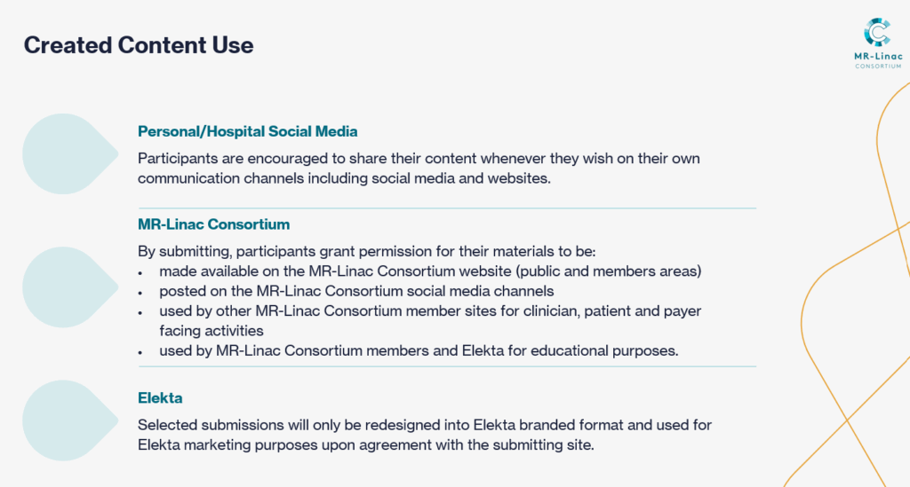 This initiative is all about raising more awareness of MR-guided radiotherapy. We’re inviting you—and all consortium members—to get creative and help spread the word about the clinical benefits of MRgRT to a broader audience, including referring clinicians, patients, and policymakers.